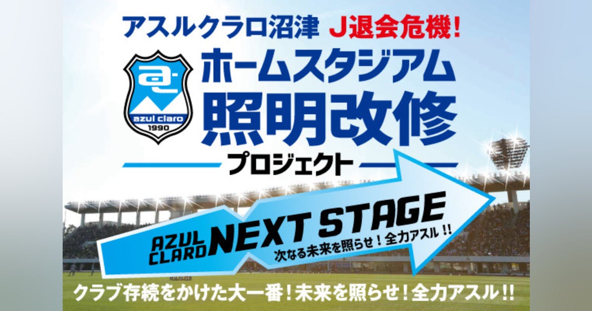 現ホームスタジアムである静岡県営愛鷹広域公園多目的競技場(以下、愛鷹(あしたか)競技場)の夜間照明は現在「500ルクス」の明るさであり、Jリーグ基準「1,500ルクス」を満たしておらず、早期の改修が実現できなければ「2023シーズン以降はJリーグライセンスが発行されない見通し」です。(一部HPから抜粋)