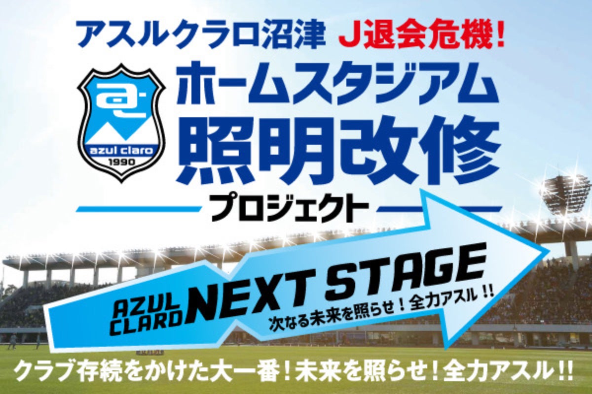 現ホームスタジアムである静岡県営愛鷹広域公園多目的競技場(以下、愛鷹(あしたか)競技場)の夜間照明は現在「500ルクス」の明るさであり、Jリーグ基準「1,500ルクス」を満たしておらず、早期の改修が実現できなければ「2023シーズン以降はJリーグライセンスが発行されない見通し」です。(一部HPから抜粋)